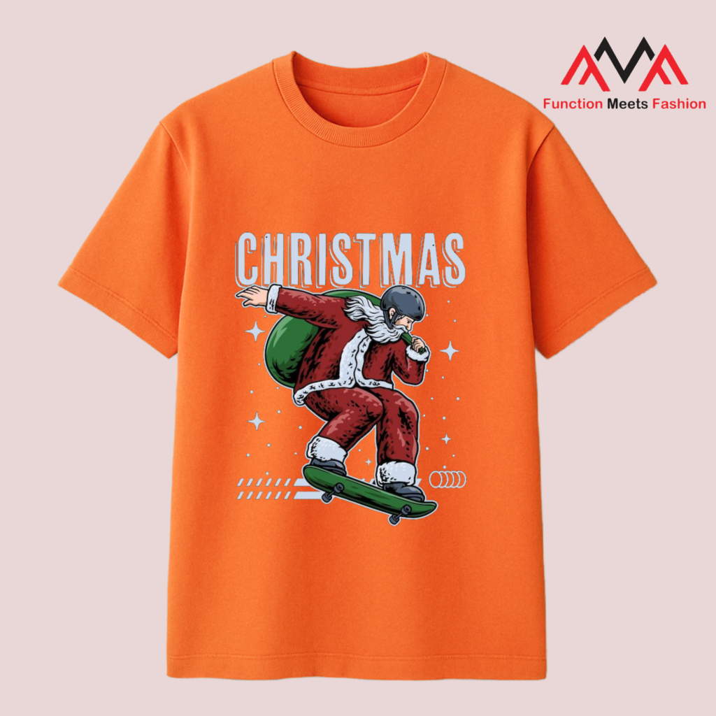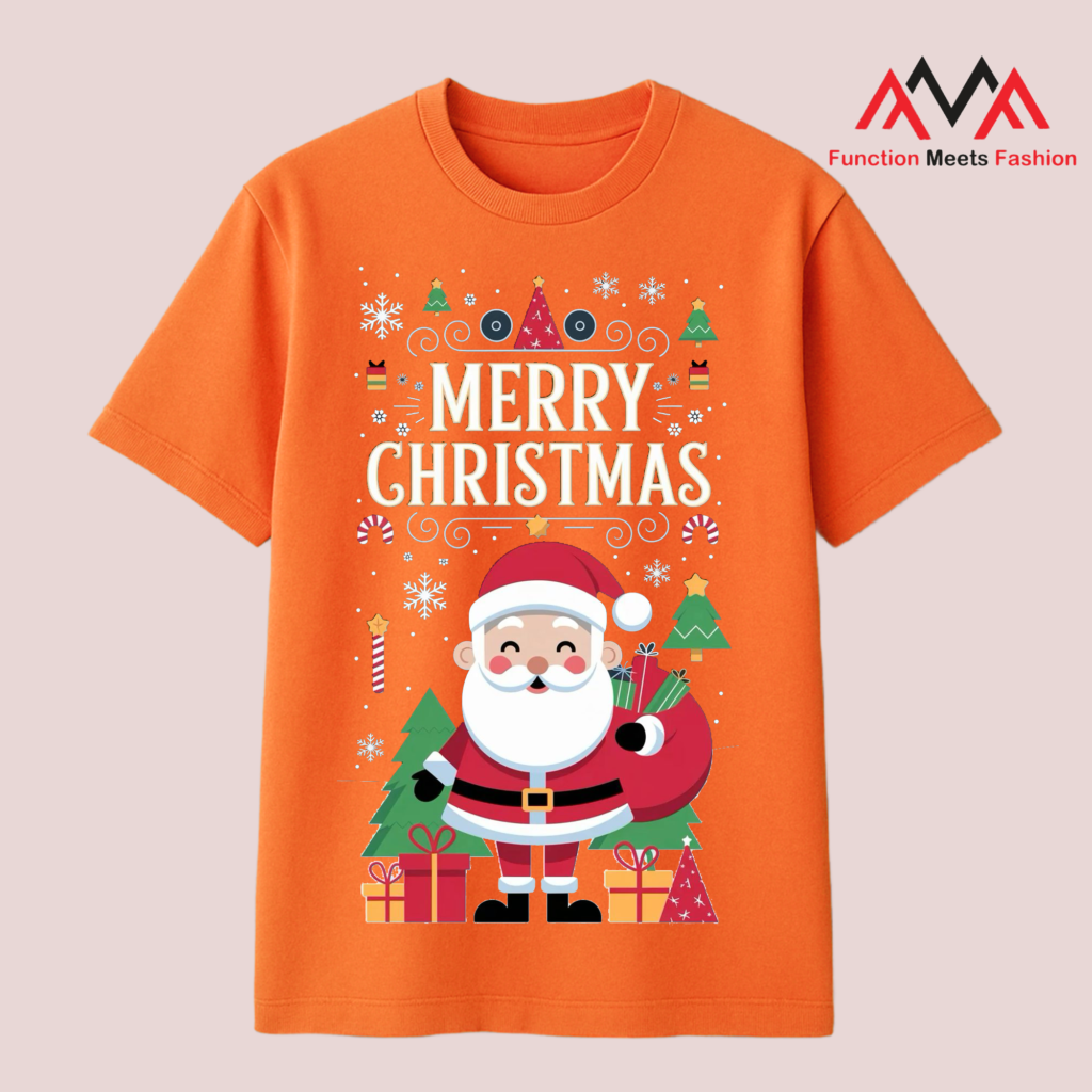 Điểm thu hút của áo thun Noel cam in hình độc lạ nằm ở thiết kế phá cách: hình ông già Noel phiên bản nhí nhố, tuần lộc đeo kính ngầu, người tuyết “cool” như rapper, hay các slogan Giáng Sinh hài hước, tranh vẽ phong cách doodle, cartoon nghệ thuật… Nhờ đó, mỗi chiếc áo không chỉ là trang phục mà còn thể hiện rõ cá tính, gu thẩm mỹ riêng của người mặc, tránh nhàm chán, trùng lặp với số đông.