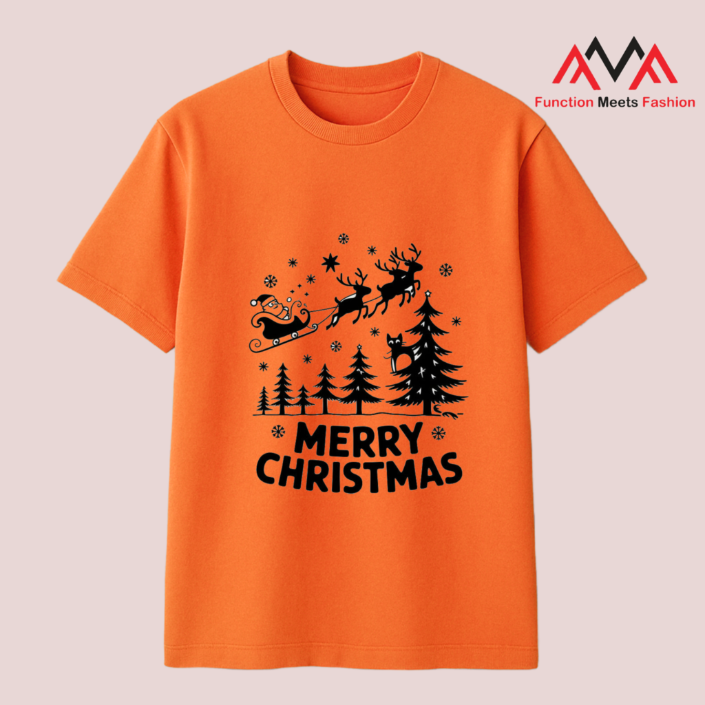 Nếu bạn đã quá quen với gam đỏ, trắng truyền thống thì áo thun Noel cam in hình độc lạ chính là lựa chọn giúp bạn “đổi gió” mà vẫn giữ trọn không khí Giáng Sinh. Màu cam tươi sáng, nổi bật dưới ánh đèn, ánh flash, cực kỳ hợp để đi chơi, chụp hình, dự tiệc Noel cùng bạn bè, gia đình hay đồng nghiệp.