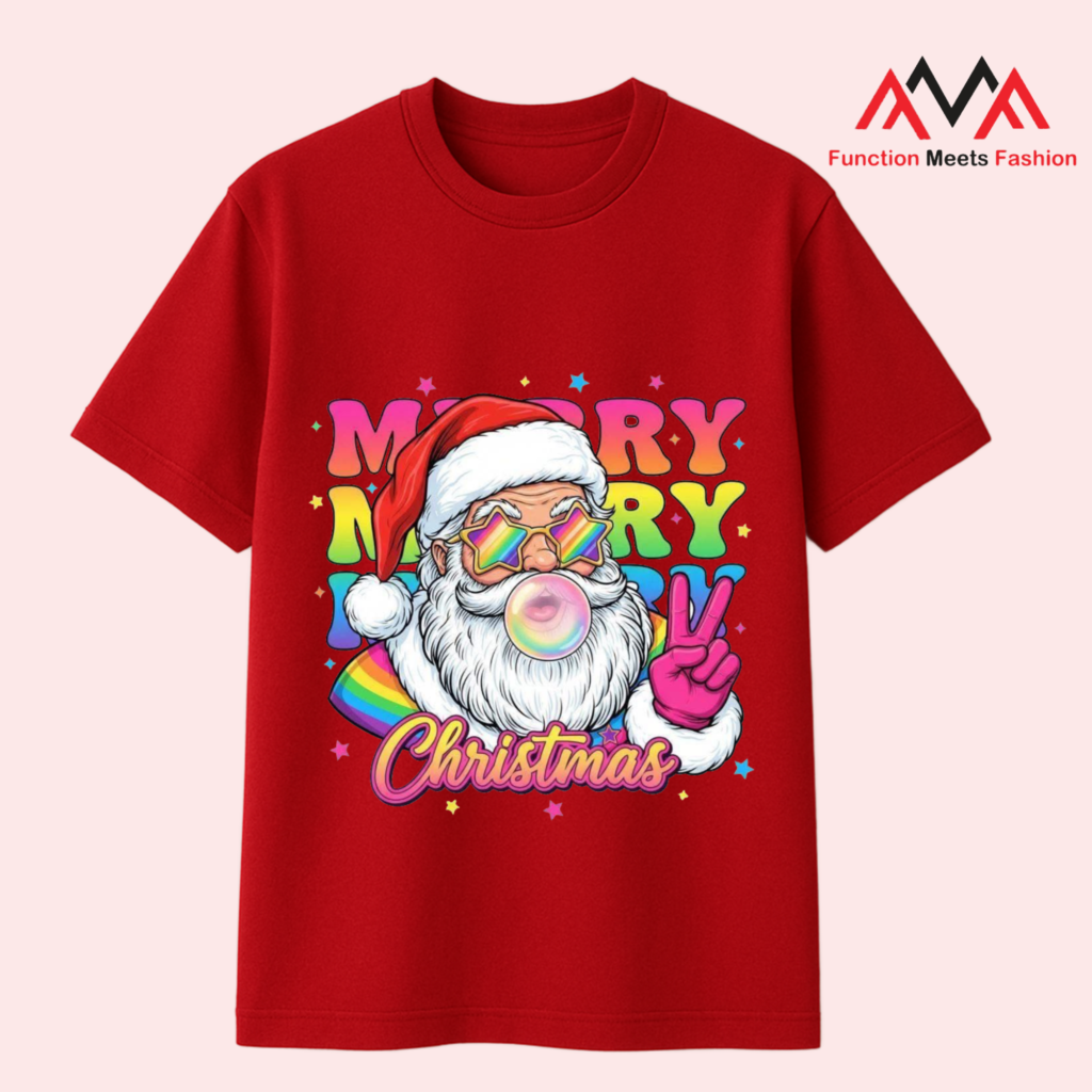 Khác với những mẫu áo in hình quen thuộc, áo thun Noel đỏ in hình độc lạ được thiết kế với các họa tiết sáng tạo như ông già Noel “phiên bản hài hước”, tuần lộc cool ngầu, chữ quote vui nhộn hay hình minh họa phong cách cartoon. Màu đỏ chủ đạo giúp tôn da, lên hình đẹp và cực kỳ phù hợp với không khí ấm áp của lễ Noel.