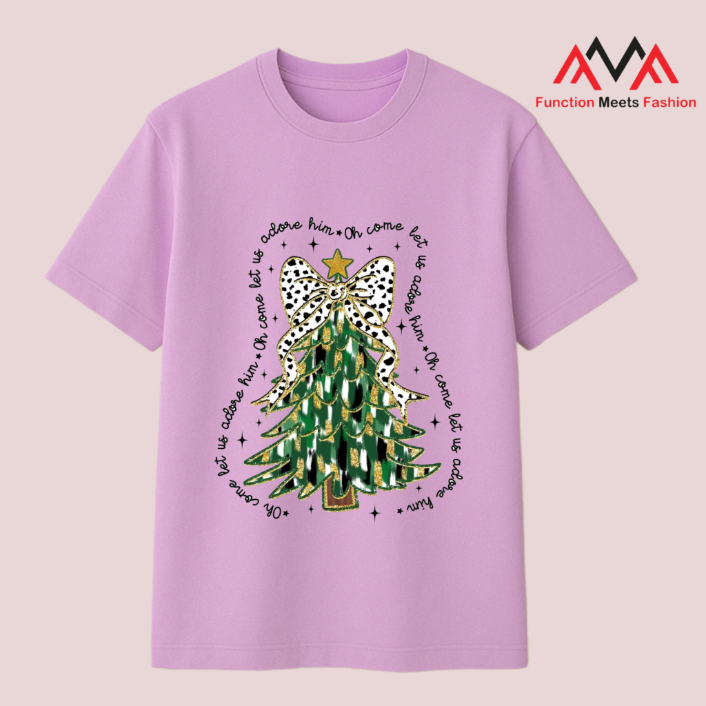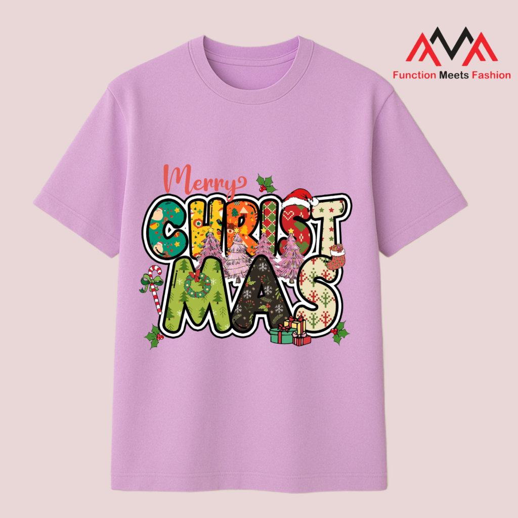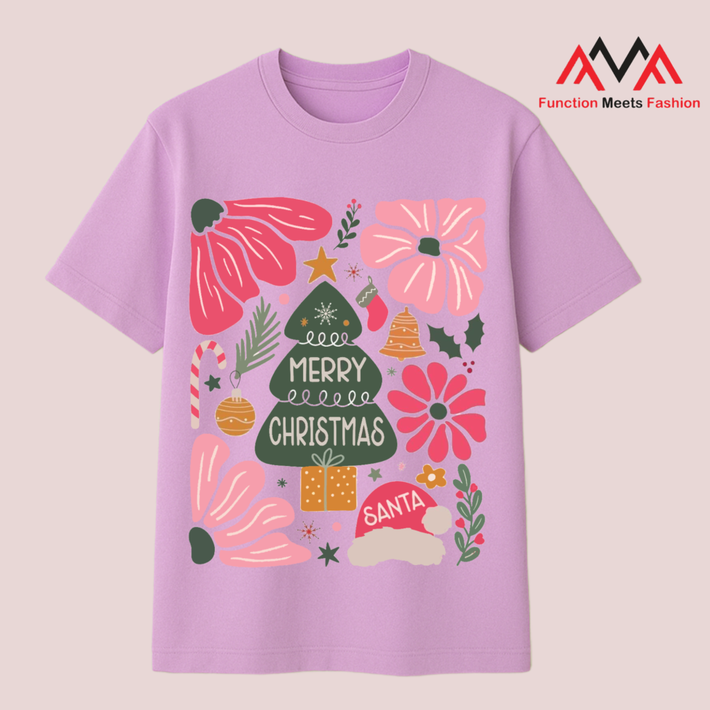 Nếu bạn yêu thích phong cách tinh tế, không quá chói nhưng vẫn muốn thật nổi bật trong dịp lễ, thì áo thun Noel tím nhạt in hình độc lạ chính là lựa chọn lý tưởng. Tông tím nhạt mang lại cảm giác ngọt ngào, trẻ trung, khi kết hợp cùng họa tiết Noel phá cách sẽ giúp bạn “ghi điểm” trong mọi khung hình Giáng Sinh.