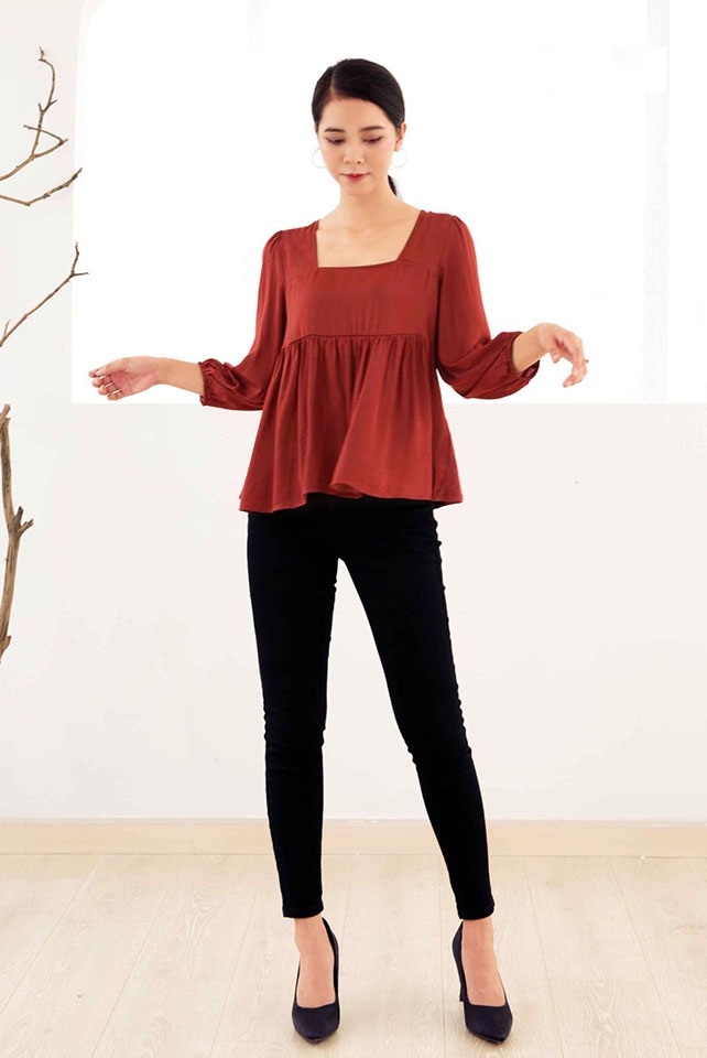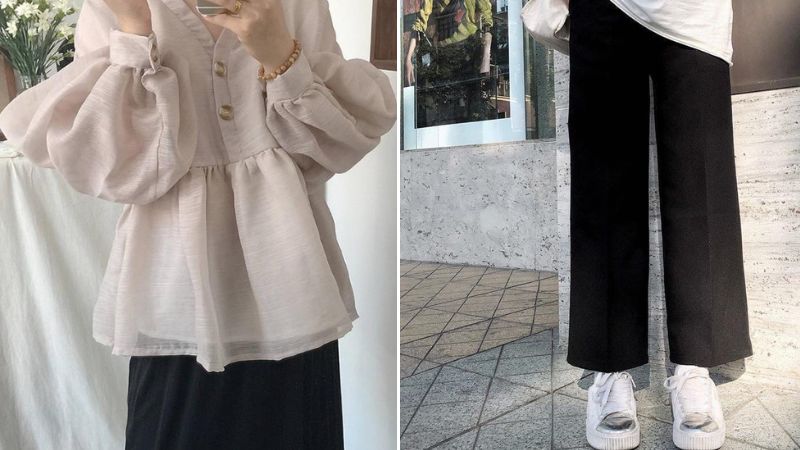 Với những chị em là dân công sở thích sự thoải mái, đơn giản và vẫn phong cách. Hãy chọn những chiếc quần tây cạp cao ống rộng mix với áo baby doll nhé. Cách phối áo baby doll này phù hợp với cả những cô nàng tuổi teen và những chị em trên 30 nhé.