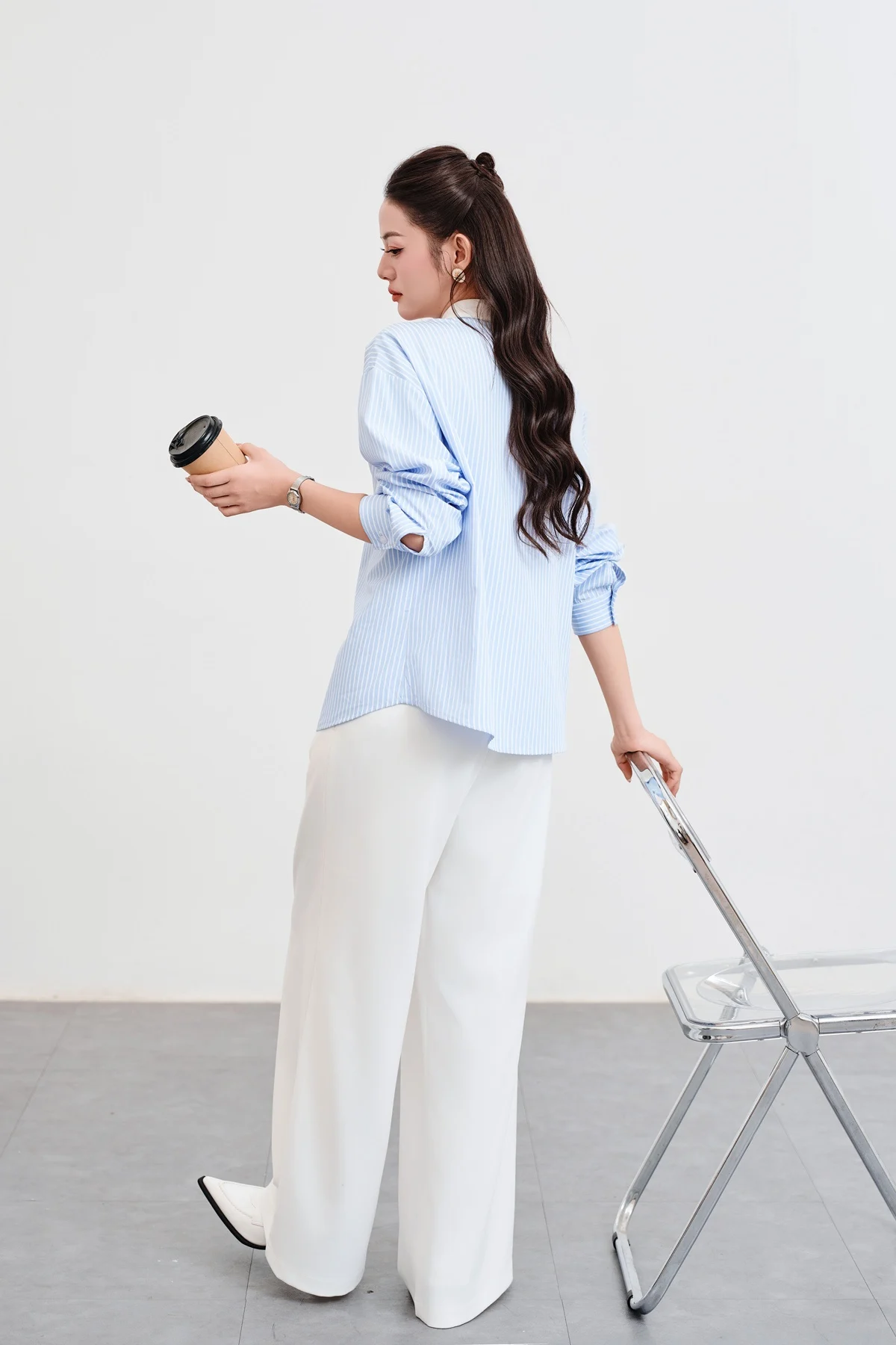 Cách mix áo sơ mi form dài + quần vải
